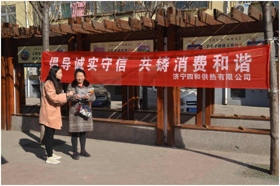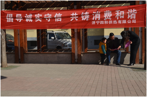 2019年3月15日上午,濟(jì)寧四和供熱有限公司客服部宣傳小隊(duì)前往吉祥社區(qū),開(kāi)展以“倡導(dǎo)誠(chéng)實(shí)守信 共鑄消費(fèi)和諧”為主題的宣傳活動(dòng),為百姓進(jìn)行義務(wù)宣傳。