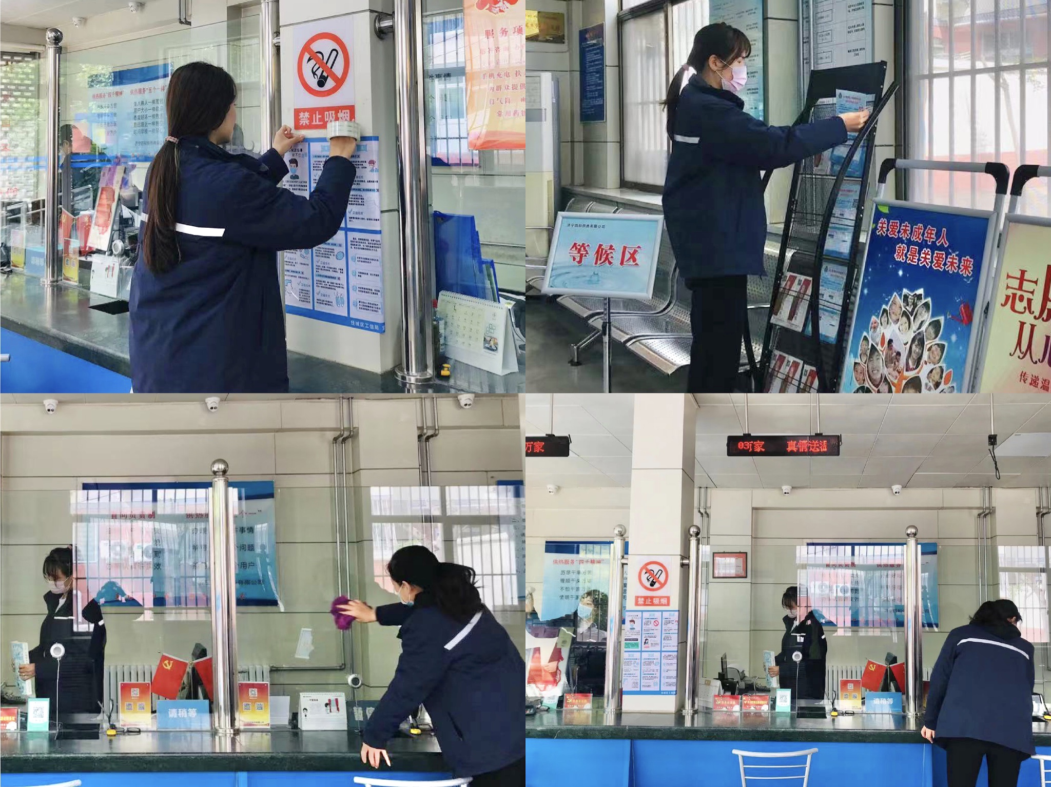 為認真落實市委、市政府關(guān)于“創(chuàng)城”各項工作安排和部署,進一步鞏固提升濟寧市創(chuàng)衛(wèi)成果,確保窗口單位營業(yè)網(wǎng)點創(chuàng)城任務(wù)全面落實。近日,濟寧四和供熱有限公司各營業(yè)廳陸續(xù)開展衛(wèi)生清掃工作,切實做好日常保潔、落實門前三包責任,為濟寧市迎接國家衛(wèi)生城市復審貢獻四和力量。